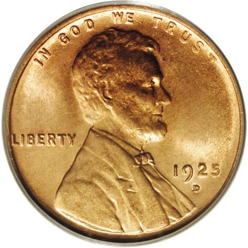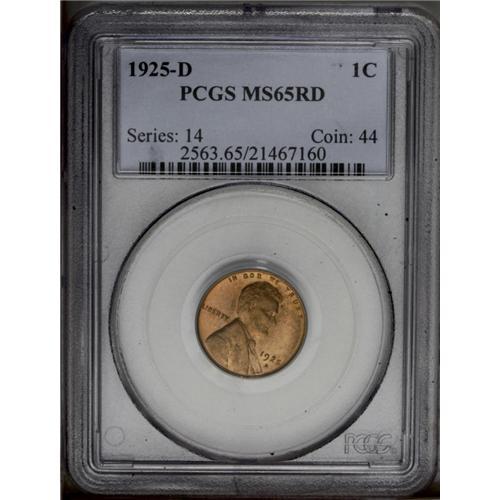 <B>1925-D<1C> MS65 Red PCGS.</B></I> The obverse is accented by bright red-orange iridescence, and the strike on both sides is unusually sharp, with minor weakness noted on the date, and on the peripheral letters. This more difficult Denver issue can be located on occasion in full red condition up to MS64, but Gems are truly scarce. Population: 38 in 65 Red, 1 finer at both services (3/06).<BR><I>From The Kendall Marie #4 All-Time Finest PCGS Registry of Lincoln Cents with Varieties, Circulation Strikes, 1909-1958.</B></I> <BR><BR><B>Important notice:</B> Heritage usually auctions material at the rate of 200-250 lots per hour. On some occasions eBay Live bid software or the Internet may not be able to keep up with the pace of the auction. We recommend placing a realistic absentee bid now as insurance to avoid disappointment. Occasionally the auctioneer may eliminate or reject an eBay Live bid, and the auctioneer may also reopen a lot after the close of the eBay live bidding (usually because we missed an audience bid), and may reject your bid even if it shows you as the winning bidder. By bidding via eBay Live, you agree that Heritage may award the lot to another bidder at its sole discretion under the circumstances described above or any other reasonable circumstances. Since eBay bids are not shown to us until we open the lot on the floor, we treat those bids just like floor bids. In most cases the floor responds before the eBay bid is presented to us, due to Internet lag time, so for consistency we have made it a policy that floor bids are always considered first over tie eBay live bids. Also please note that all Heritage lots purchased through eBay Live carry a 20% Buyer's Premium. Please make sure you read the Terms and Conditions before you bid. This lot is being auctioned in conjunction with a live floor auction by Heritage Galleries & Auctioneers. All final auction and invoice information will be supplied by Heritage Galleries & Auctioneers, and all other information should be considered preliminary. Lot:513 <BR><BR><B>Winning Notification and Billing:</B> After the FINAL session in this auction is complete, Heritage will send e-mail and snail mail invoices. This process normally takes several days. All final auction and invoice information will be supplied by Heritage Galleries & Auctioneers, and all other information should be considered preliminary. <BR><BR>This auction will be conducted on a live auction floor and over the Internet through eBay Live. If you choose to place an absentee bid, please take a moment to <font color='#0000ff'><u><a href='http://pages.ebay.com/liveauctions/help/before/laabsentee.html'>learn how eBay Live absentee bidding works</a></u></font><font color='#000000'>