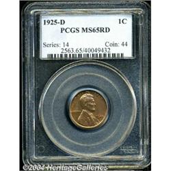 <B>1925-D<1C> MS65 Red PCGS.</B></I> Lustrous copper-orange color dominates each side of this well struck, minimally abraded specimen. A small carbon spot on the lower right reverse is mentioned for accuracy. Population: 44 in 65, 1 finer (7/04). <BR><BR><B>Important notice:</B> Heritage usually auctions material at the rate of 200-250 lots per hour. On some occasions eBay Live bid software or the Internet may not be able to keep up with the pace of the auction. We recommend placing a realistic absentee bid now as insurance to avoid disappointment. Occasionally the auctioneer may eliminate or reject an eBay Live bid, and the auctioneer may also reopen a lot after the close of the eBay live bidding (usually because we missed an audience bid), and may reject your bid even if it shows you as the winning bidder. By bidding via eBay Live, you agree that Heritage may award the lot to another bidder at its sole discretion under the circumstances described above or any other reasonable circumstances. Since eBay bids are not shown to us until we open the lot on the floor, we treat those bids just like floor bids. In most cases the floor responds before the eBay bid is presented to us, due to Internet lag time, so for consistency we have made it a policy that floor bids are always considered first over tie eBay live bids. Also please note that all Heritage lots purchased through eBay Live carry a 20% Buyer's Premium. Please make sure you read the Terms and Conditions before you bid. </span></font></tr></table></td></tr></table>