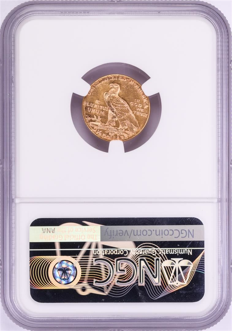 One 1925-D $2 1/2 Indian Head Quarter Eagle Gold Coin NGC MS62. NGC Certified.