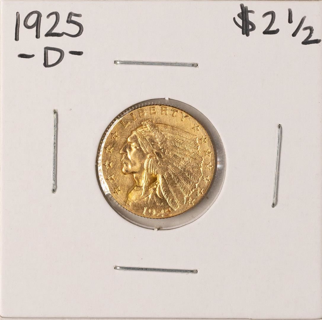 One 1925-D $2 1/2 Indian Head Quarter Eagle Gold Coin.