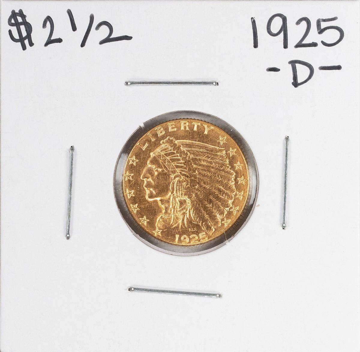 One 1925-D $2 1/2 Indian Head Quarter Eagle Gold Coin.