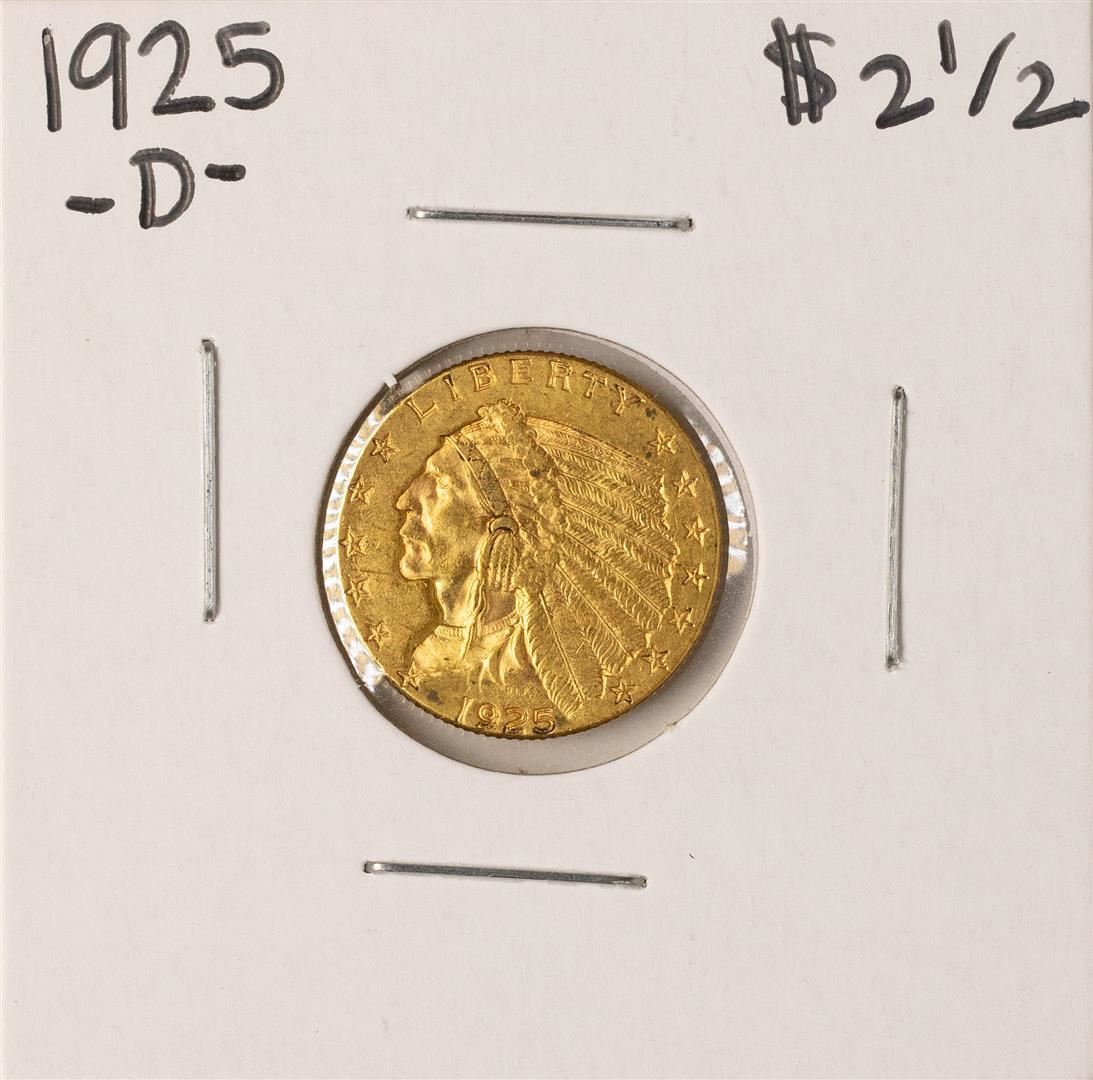 One 1925-D $2 1/2 Indian Head Quarter Eagle Gold Coin.