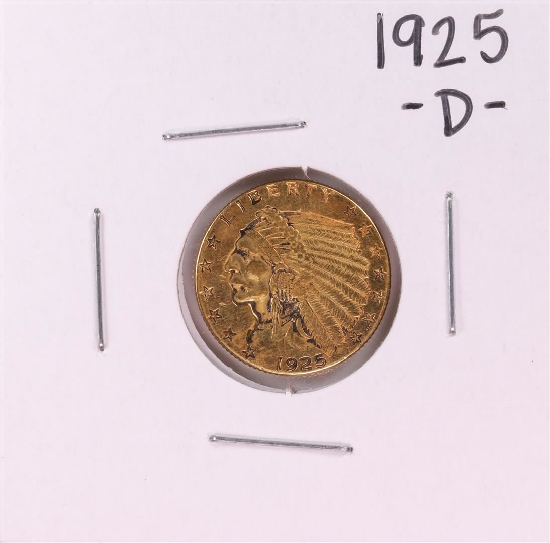 One 1925-D $2 1/2 Indian Head Quarter Eagle Gold Coin.