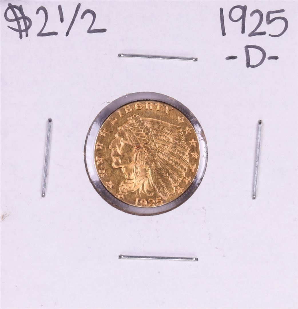 One 1925-D $2 1/2 Indian Head Quarter Eagle Gold Coin.