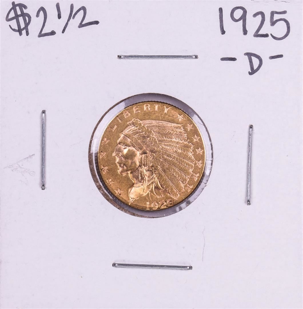 One 1925-D $2 1/2 Indian Head Quarter Eagle Gold Coin.