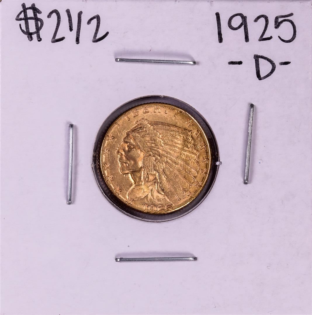 One 1925-D $2 1/2 Indian Head Quarter Eagle Gold Coin.