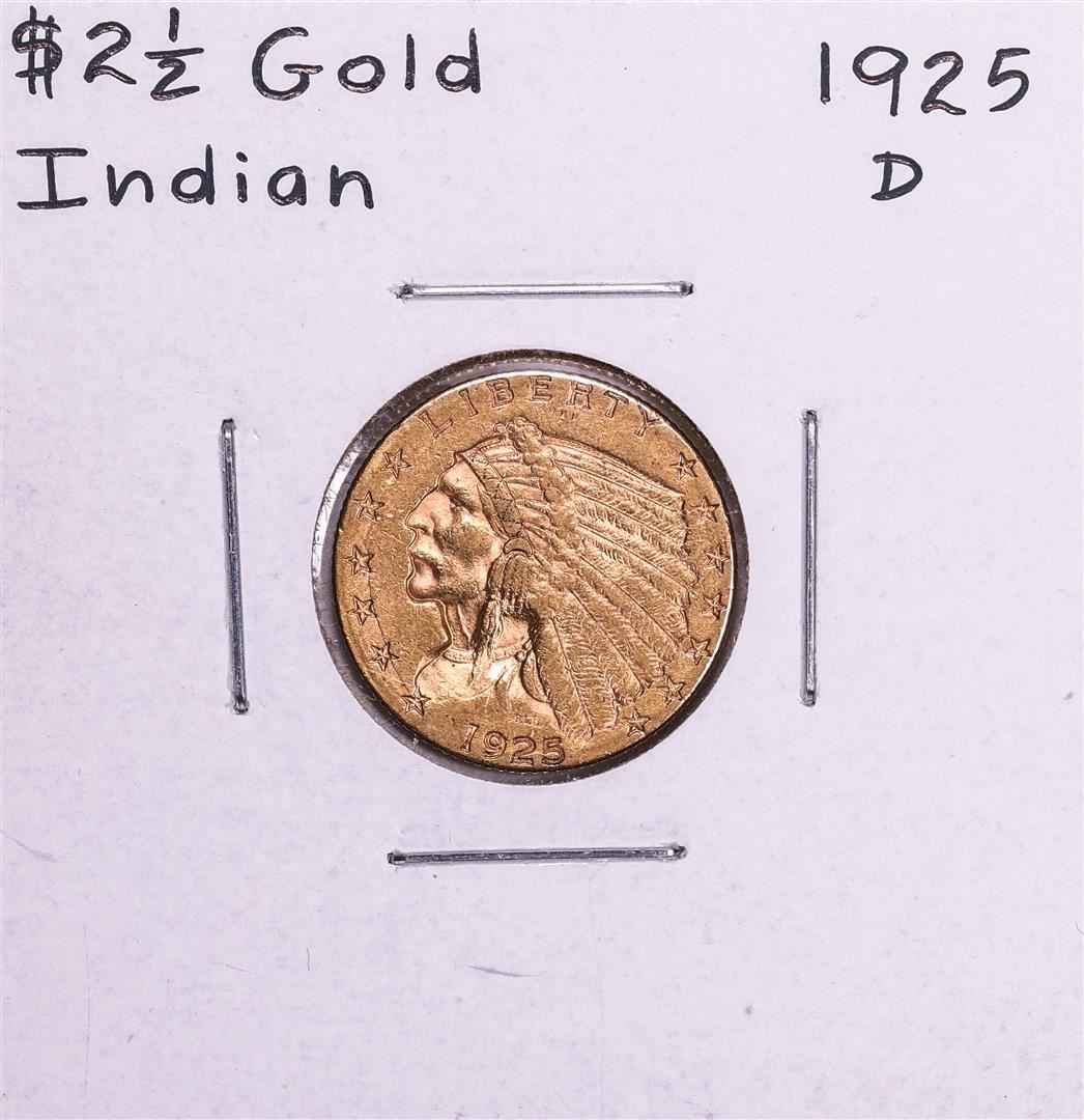 One 1925-D $2 1/2 Indian Head Quarter Eagle Gold Coin.