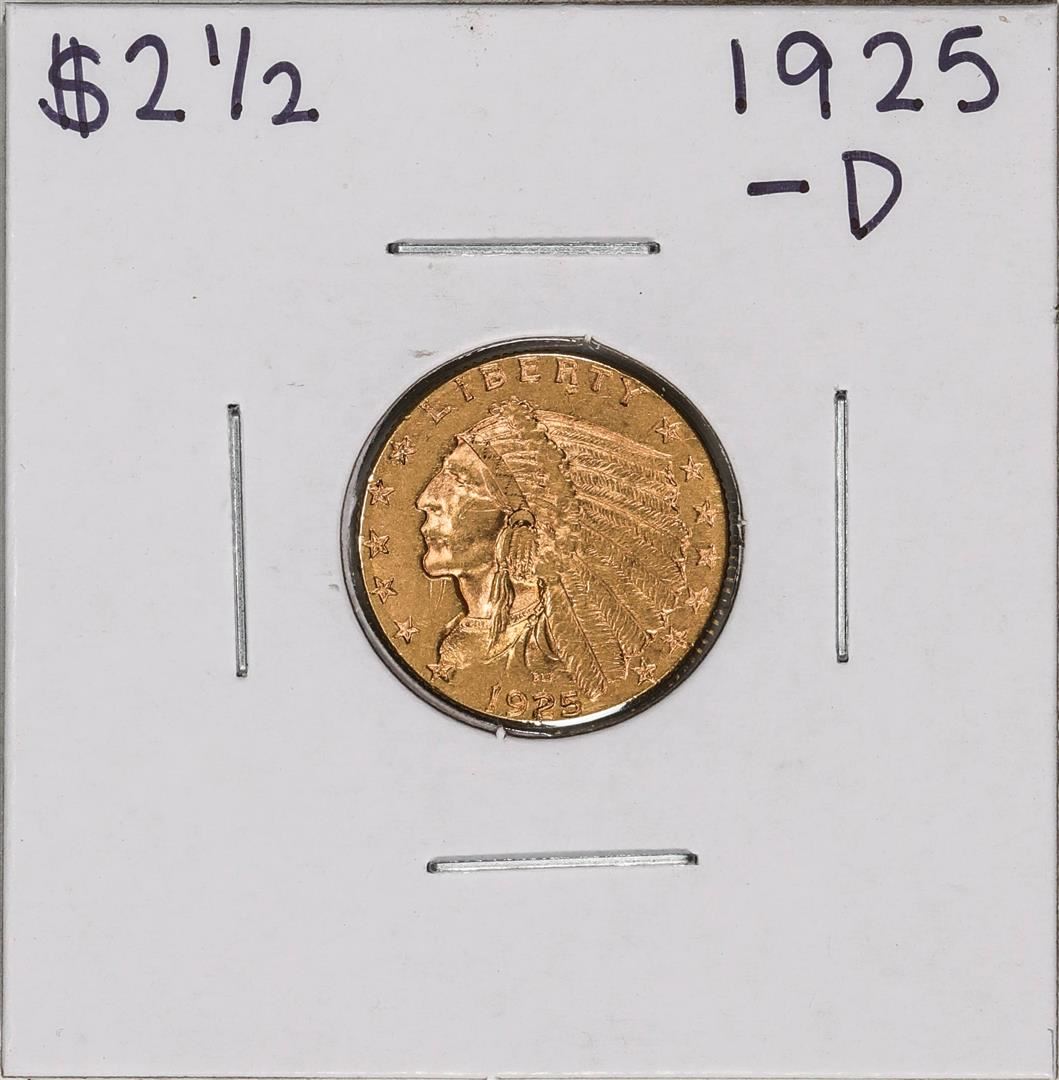 One 1925-D $2 1/2 Indian Head Quarter Eagle Gold Coin.