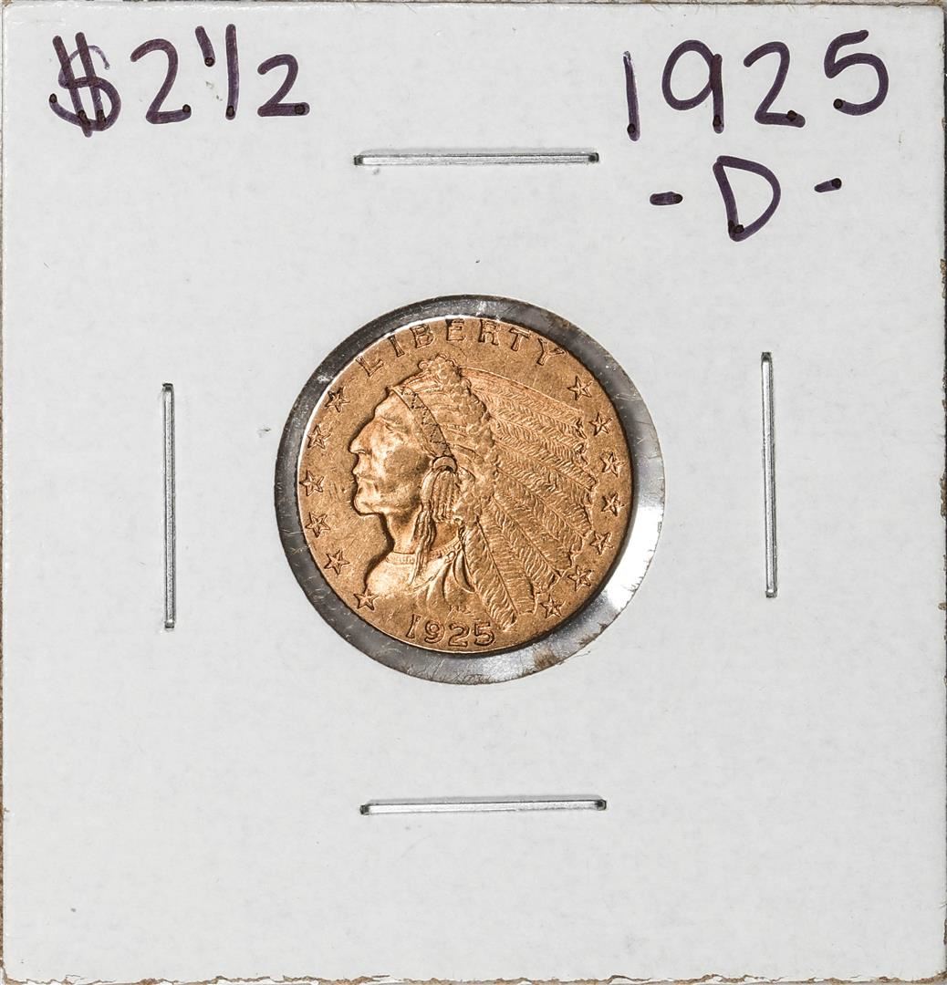 One 1925-D $2 1/2 Indian Head Quarter Eagle Gold Coin.