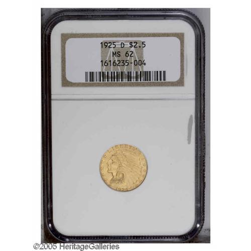 1925-D $2 1/2 MS62 NGC.From The Meads Point Collection 1925-D[$2 1/2] MS62 NGC.