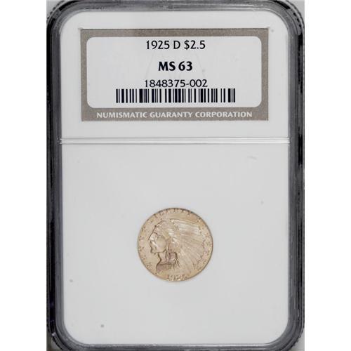 1925-D $2 1/2 MS63 NGC. A nicely struck honey-gold pie