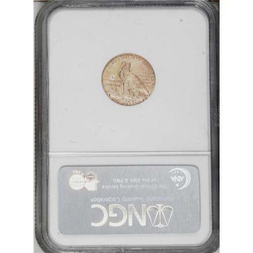 <B>1925-D<$2 1/2> MS63 NGC.</B></I> A nicely struck honey-gold piece that has lovely luster. Pale green and violet accents appear in the deepest recesses, while tiny marks dot the exposed fields.