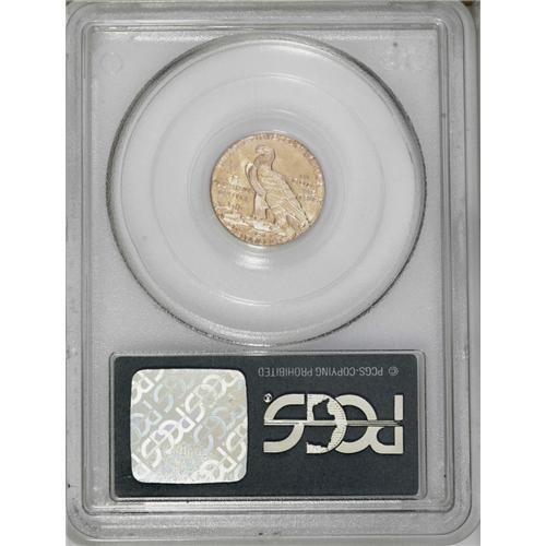 <B>1925-D<$2 1/2> MS63 PCGS.</B></I> A luminous sun-gold example with splendidly smooth fields. The lowest headdress feathers show intermittent incompleteness of detail. Struck from rotated dies, and housed in a green label holder.