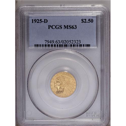 1925-D $2 1/2 MS63 PCGS. Well struck, lustrous, and ni