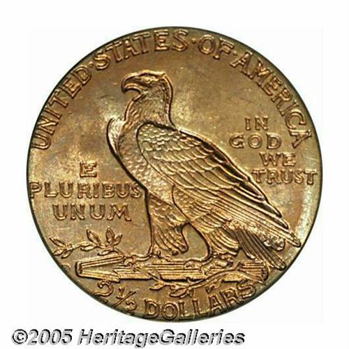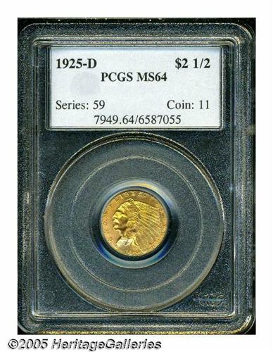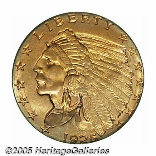 <B>1925-D<$2 1/2> MS64 PCGS.</B></I> Lustrous with light orange-gold toning splashed over the obverse and reverse. Clean and attractive surfaces with just a few thin lines visible with a loupe.