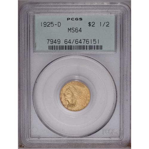 <B>1925-D<$2 1/2> MS64 PCGS.</B></I> Pumpkin-gold and olive colors intermingle throughout. A few faint marks on the field behind the eagle's head do not deny the eye appeal. Housed in a green label PCGS holder.