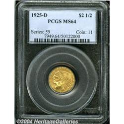 <B>1925-D<$2 1/2> MS64 PCGS.</B></I> Pale green and apricot-gold toning adheres to each side. Nicely struck design elements. A few small marks are apparent on the Indian's cheekbone. <BR><BR><B>Important notice:</B> Heritage usually auctions material at the rate of 200-250 lots per hour. On some occasions eBay Live bid software or the Internet may not be able to keep up with the pace of the auction. We recommend placing a realistic absentee bid now as insurance to avoid disappointment. Occasionally the auctioneer may eliminate or reject an eBay Live bid, and the auctioneer may also reopen a lot after the close of the eBay live bidding (usually because we missed an audience bid), and may reject your bid even if it shows you as the winning bidder. By bidding via eBay Live, you agree that Heritage may award the lot to another bidder at its sole discretion under the circumstances described above or any other reasonable circumstances. Since eBay bids are not shown to us until we open the lot on the floor, we treat those bids just like floor bids. In most cases the floor responds before the eBay bid is presented to us, due to Internet lag time, so for consistency we have made it a policy that floor bids are always considered first over tie eBay live bids. Also please note that all Heritage lots purchased through eBay Live carry a 20% Buyer's Premium. Please make sure you read the Terms and Conditions before you bid. </span></font></tr></table></td></tr></table>