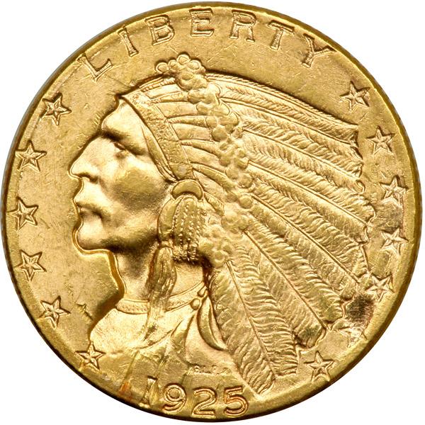 1925-D $2½. MS-60 Plus. Small obverse defects.