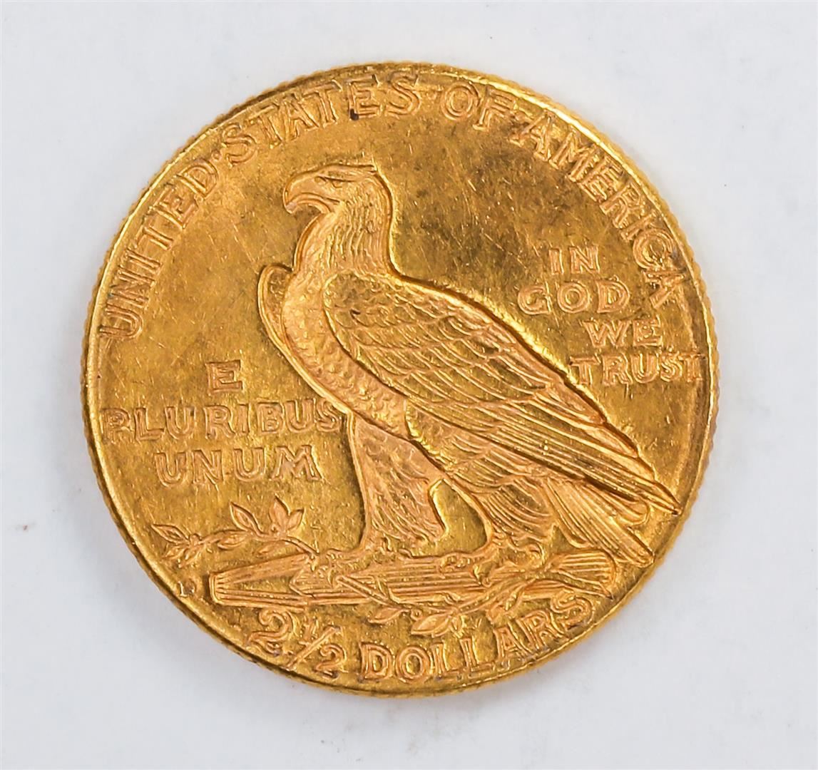 One 1925-D $2.5 Indian Head Quarter Eagle Gold Coin CU.