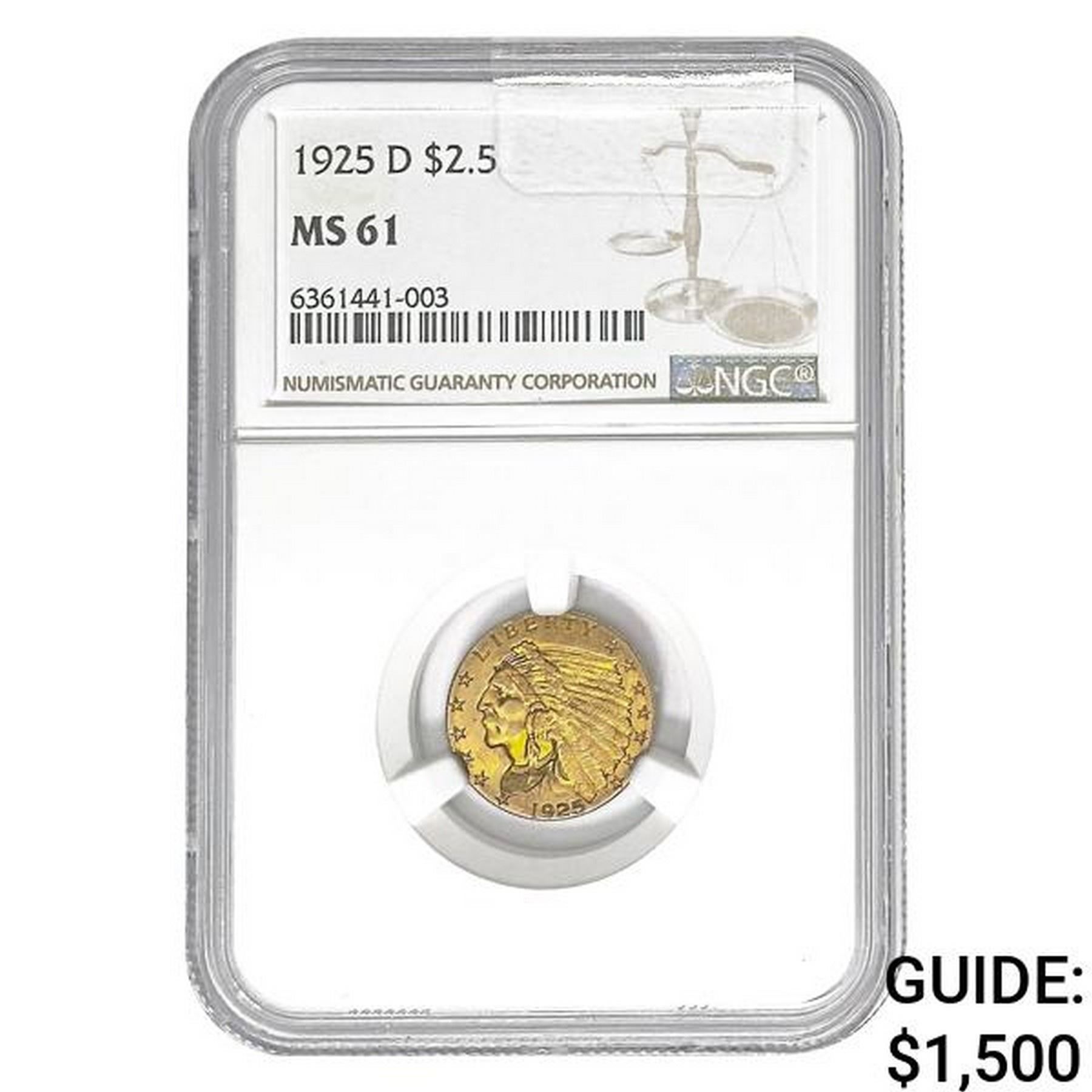 1925-D $2.50 Gold Quarter Eagle NGC MS61