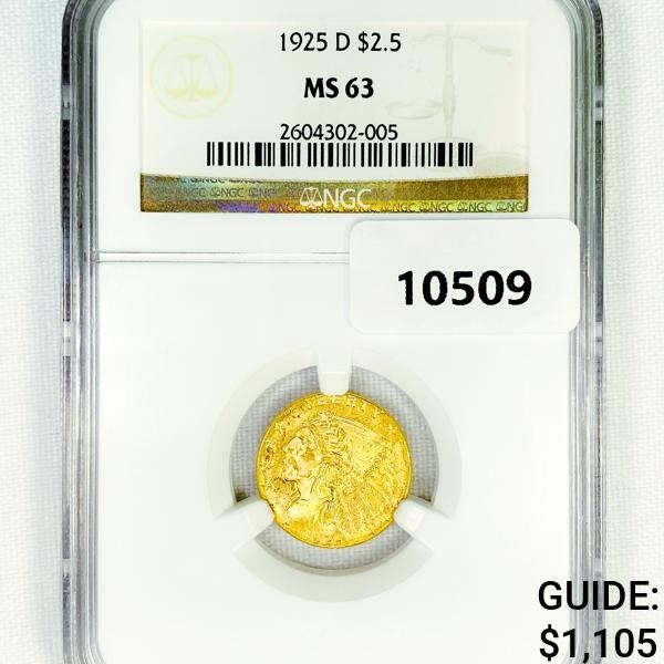 1925-D $2.50 Gold Quarter Eagle NGC-MS63