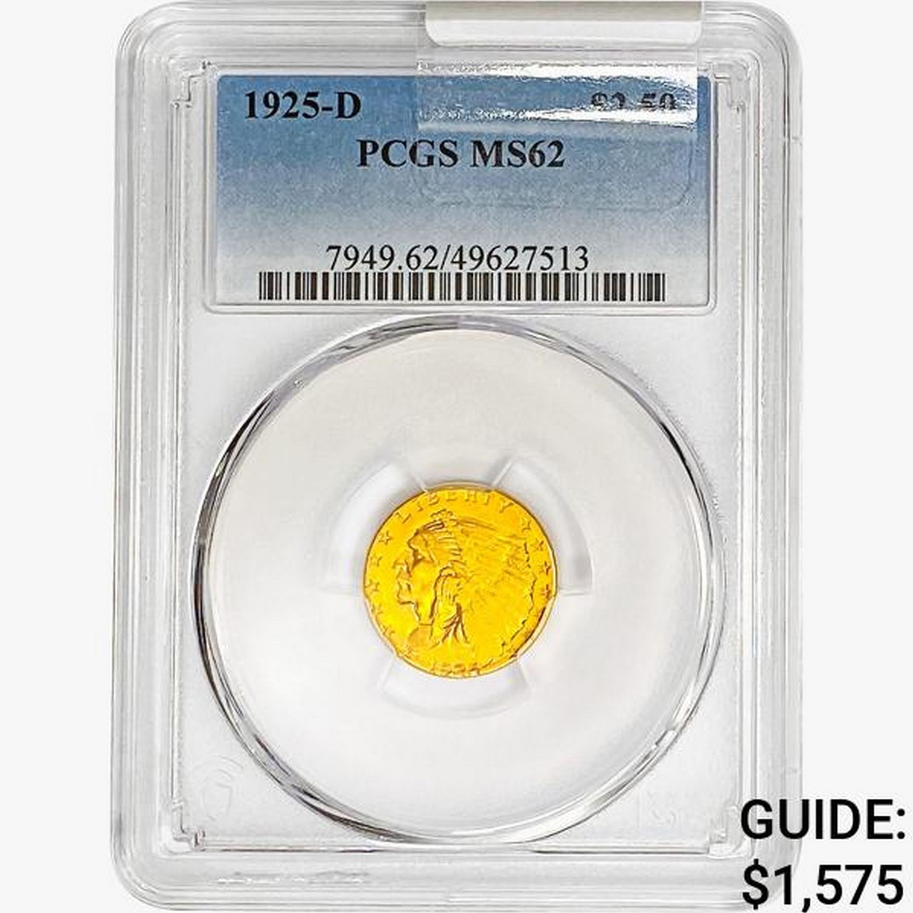 1925-D $2.50 Gold Quarter Eagle PCGS MS62
