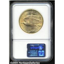 <B>1925-D<$20> MS63 NGC.</B></I> Although valued less, the '25-D Double Eagle is similar in rarity to the 1926-D and 1929. Of the 200 or so pieces believed extant today, most fall into the lower Mint State categories. While the present piece shows a few scattered abrasions throughout, the surfaces are nicely struck (save for some of the highpoint detail on the obverse), and richly frosted. Vibrant yellow-gold color envelops both sides. In sum, this is an attractive representative of this scarce and desirable D-mint issue. <BR><BR><B>Important notice:</B> Heritage usually auctions material at the rate of 200-250 lots per hour. On some occasions eBay Live bid software or the Internet may not be able to keep up with the pace of the auction. We recommend placing a realistic absentee bid now as insurance to avoid disappointment. Occasionally the auctioneer may eliminate or reject an eBay Live bid, and the auctioneer may also reopen a lot after the close of the eBay live bidding (usually because we missed an audience bid), and may reject your bid even if it shows you as the winning bidder. By bidding via eBay Live, you agree that Heritage may award the lot to another bidder at its sole discretion under the circumstances described above or any other reasonable circumstances. Since eBay bids are not shown to us until we open the lot on the floor, we treat those bids just like floor bids. In most cases the floor responds before the eBay bid is presented to us, due to Internet lag time, so for consistency we have made it a policy that floor bids are always considered first over tie eBay live bids. Also please note that all Heritage lots purchased through eBay Live carry a 20% Buyer's Premium. Please make sure you read the Terms and Conditions before you bid.