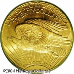 1925-D $20 MS63 PCGS. While the mintage of this mu <B>1925-D $20 MS63 PCGS.</B></I> While the mintage of this much coveted date approached 3 million coins, the vast majority were eventually melted into gold bars by the U.S. Government. Like the majority of survivors, this is a Mint State example that is well struck and has flashy cartwheel luster. However, this coin has fewer bagmarks than most, and is choice for the grade as a result. <BR><BR><B>Important notice:</B> Heritage usually auctions material at the rate of 200-250 lots per hour. On some occasions eBay Live bid software or the Internet may not be able to keep up with the pace of the auction. We recommend placing a realistic absentee bid now as insurance to avoid disappointment. Occasionally the auctioneer may eliminate or reject an eBay Live bid, and the auctioneer may also reopen a lot after the close of the eBay live bidding (usually because we missed an audience bid), and may reject your bid even if it shows you as the winning bidder. By bidding via eBay Live, you agree that Heritage may award the lot to another bidder at its sole discretion under the circumstances described above or any other reasonable circumstances. Since eBay bids are not shown to us until we open the lot on the floor, we treat those bids just like floor bids. In most cases the floor responds before the eBay bid is presented to us, due to Internet lag time, so for consistency we have made it a policy that floor bids are always considered first over tie eBay live bids. Also please note that all Heritage lots purchased through eBay Live carry a 20% Buyer's Premium. Please make sure you read the Terms and Conditions before you bid. This lot is being auctioned in conjunction with a live floor auction by Heritage Galleries & Auctioneers. All final auction and invoice information will be supplied by Heritage Galleries & Auctioneers, and all other information should be considered preliminary. Lot:7236