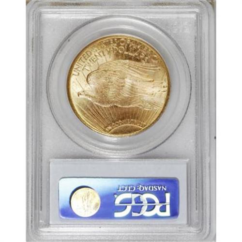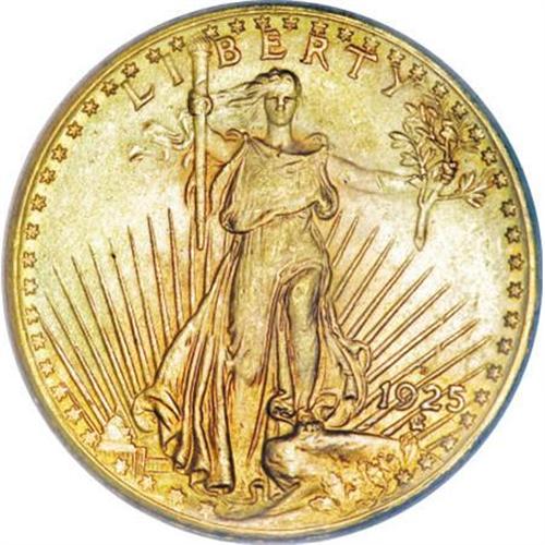 <B>1925-D $20 MS64 PCGS.</B></I> In the last 15 years, we have only offered nine examples of this date in the finer Gem grades of MS65 or MS66. Just five of the nine were graded by PCGS. The advanced collector must consider this extremely important opportunity carefully. This lovely near-Gem exhibits rich satin luster with a nice blend of green-gold and rich orange-gold on both sides. The surfaces have a few minor marks that prevent a Gem grade determination but none are individually significant. It is a sharp example with nearly all of the design details completely defined. PCGS has certified six coins finer (12/07).<BR><BR><B>Coin Engraver:</B> Augustus Saint-Gaudens<BR><BR><b>Shipping:</b> Coins & Currency (<a target="_blank" href="http://www.heritageauctions.com/common/shipping.php">view shipping information</a>)