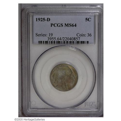 1925-D 5C MS64 PCGS. Delicate steel-green toning, shad 1925-D[5C] MS64 PCGS.