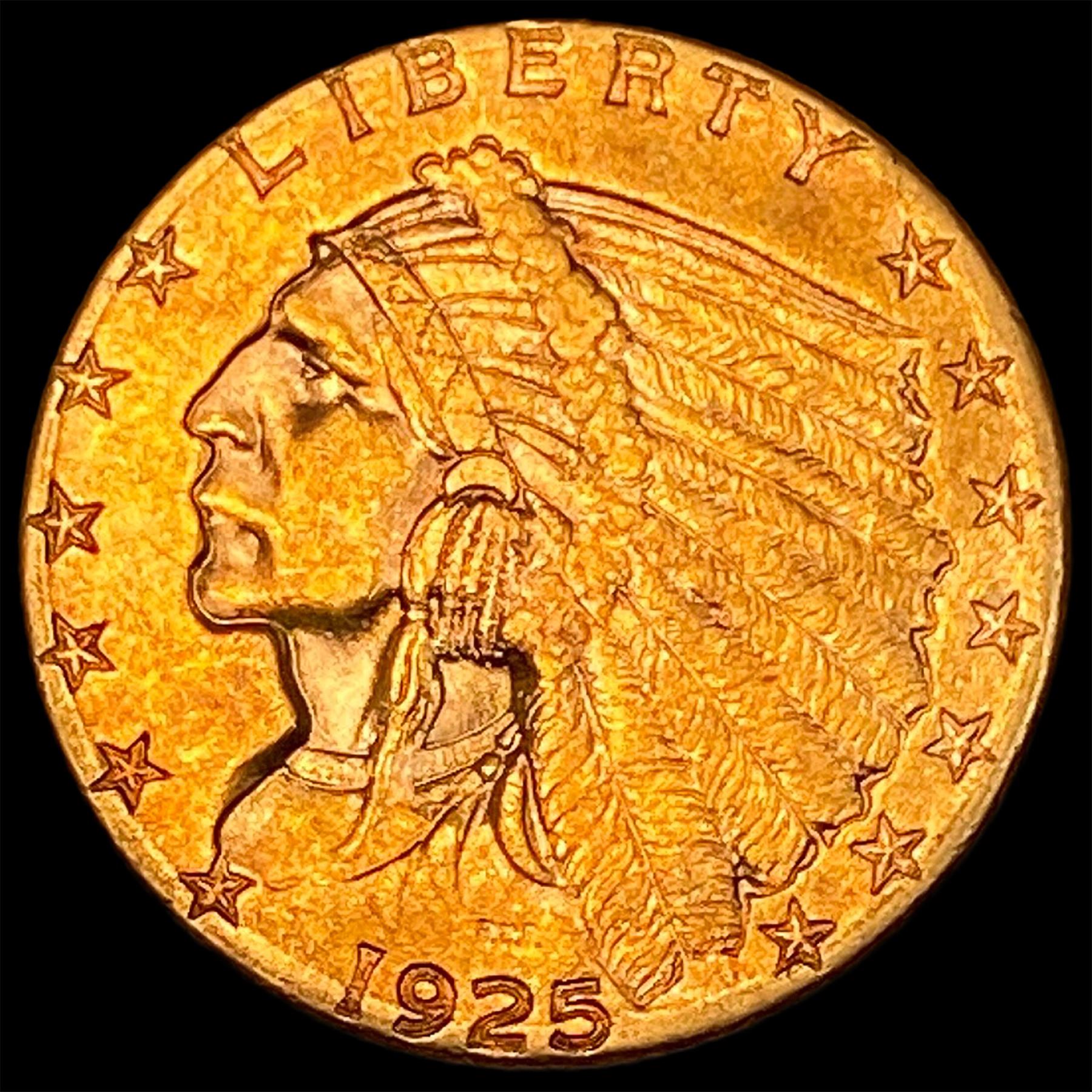 1925-D Gold Indian Head $2.5 Quarter Eagle CLOSELY UNCIRCULATED