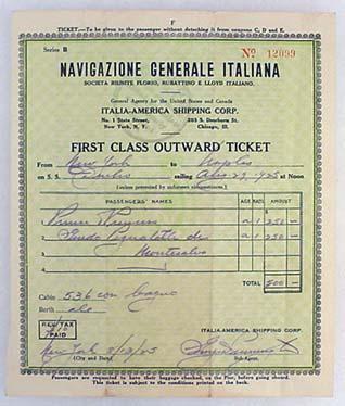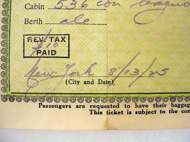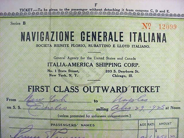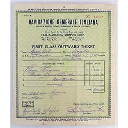 1925 FIRST CLASS SHIP TICKET FOR A PRINCE AND PRINCESS - New York to Naples. For Prince and Princess Guido Pignalatle de Montisavo, we think hard to read.