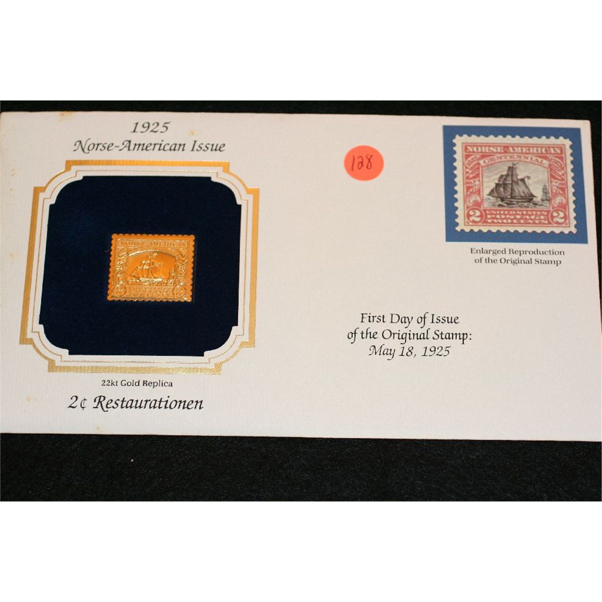 1925 First Day Issue 22K Gold Replica Stamp w/stamps, Two Cent Restaurationen