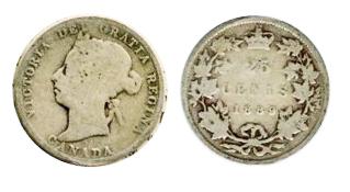 1925. ICCS AU-50. Glossy brown; 25 CENTS. 1889. ICCS GOOD-4. Lot of two (2) ‘key’ dates.