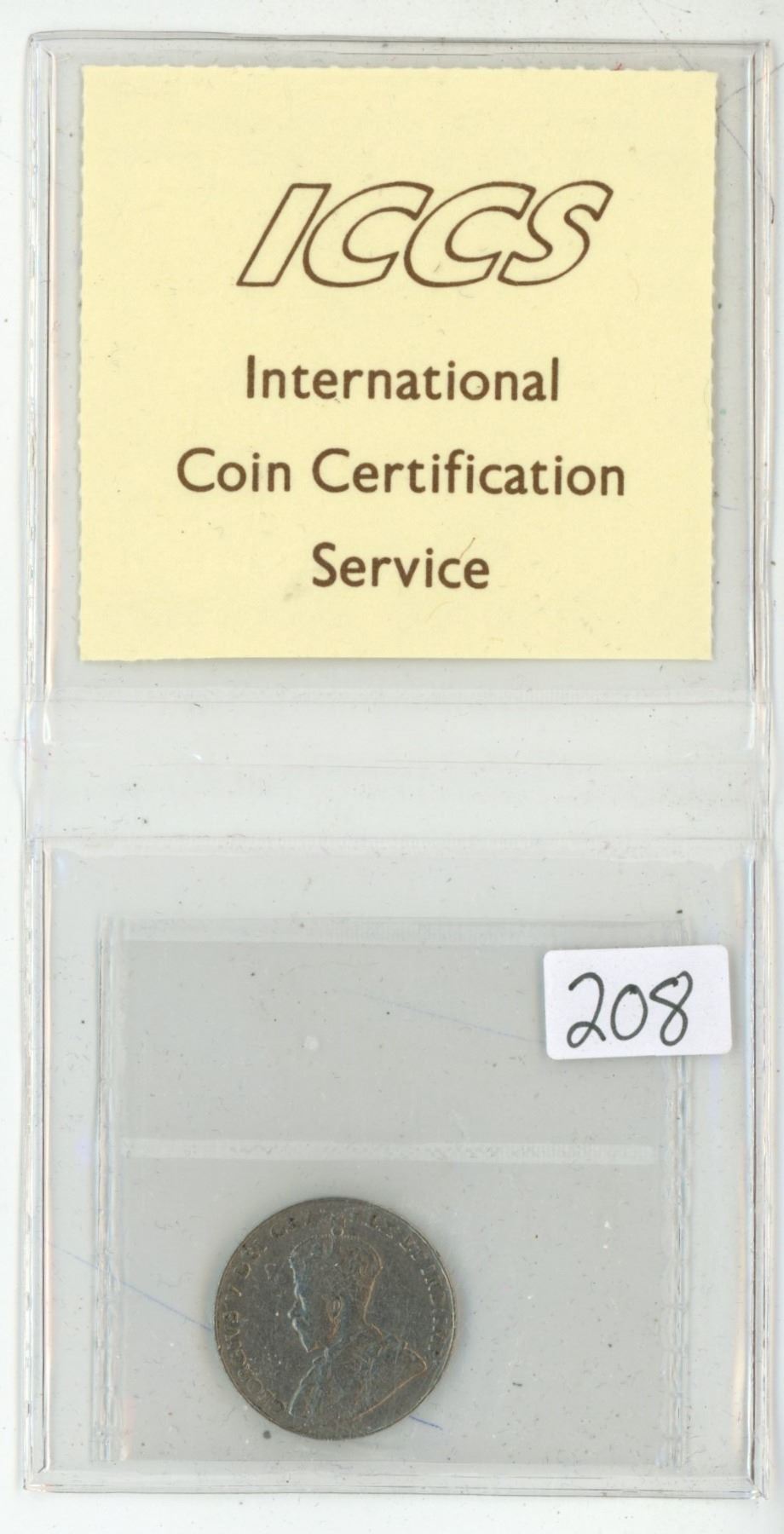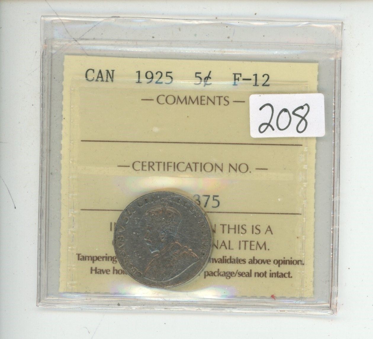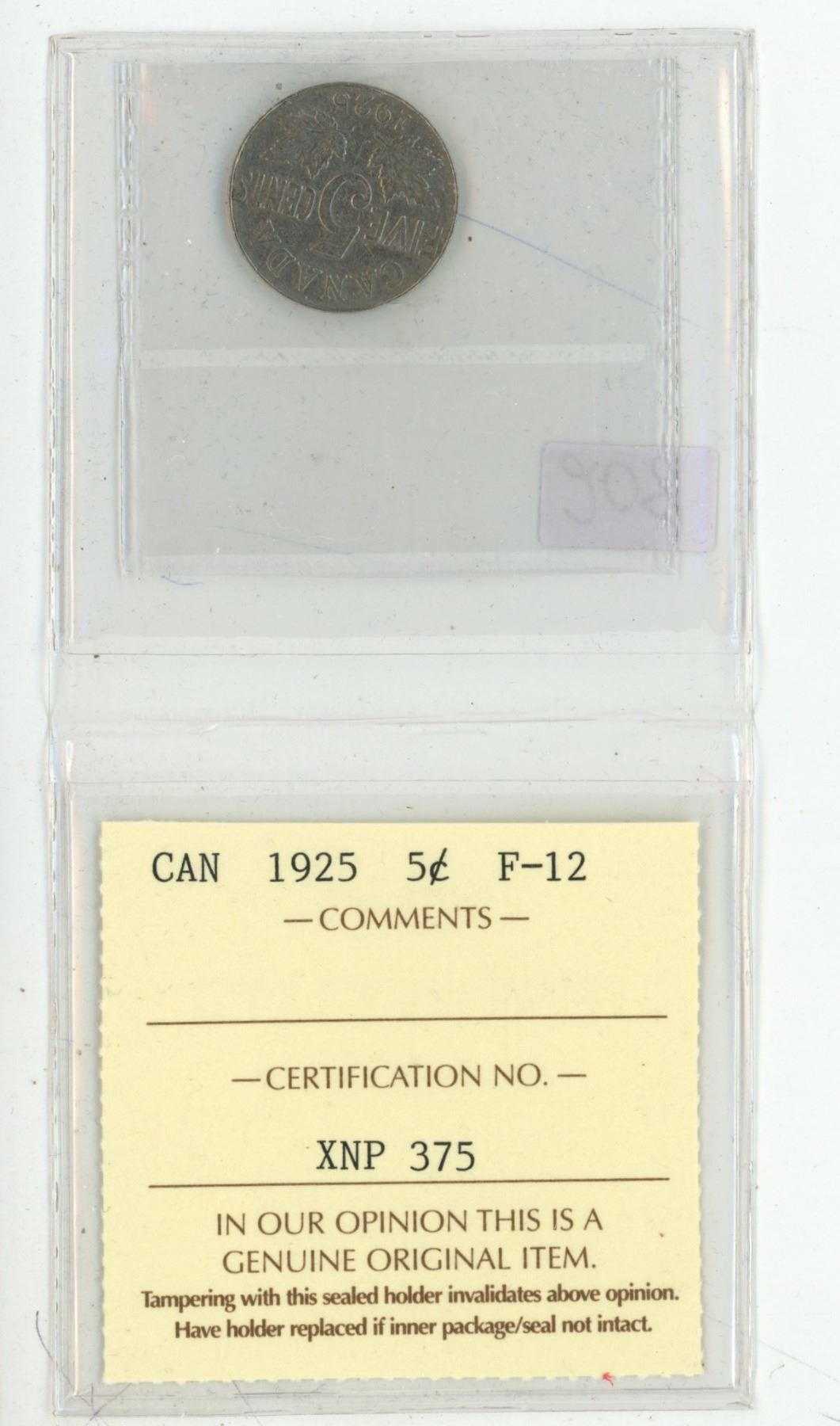 1925 ICCS graded, Canadian 5 cent coin - F12