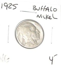 1925 *KEY DATE* BUFFALO NICKEL RED BOOK VALUE $4.00+ *NICE EARLY VERY GOOD GRADE*!! BUFFALO NICKEL CAME OUT OF SAFE!! ***Coin, Currency & All Items Listed in this auction - Grades, Conditions and Values are not Safe Deposit Coins LLC Responsibilty. Grades, Condition and Values are determined by Consigner(s)& buyer's only.