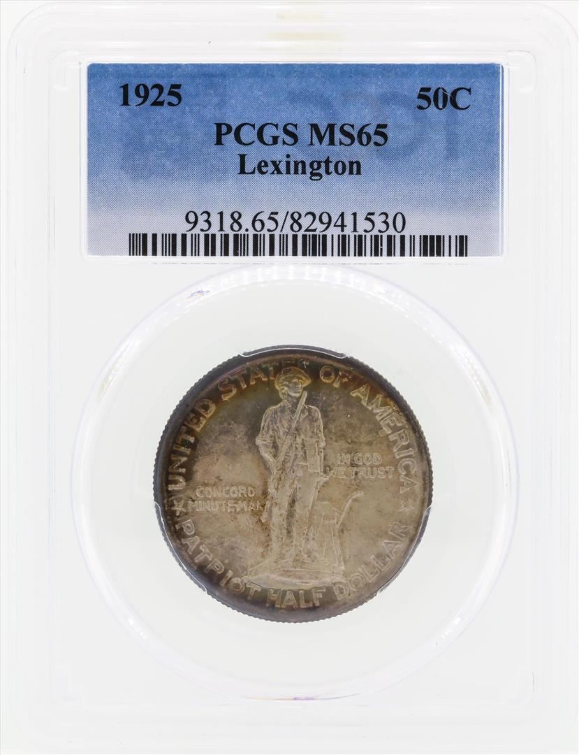 One 1925 Lexington Commemorative Half Dollar Coin PCGS MS65. PCGS Graded.