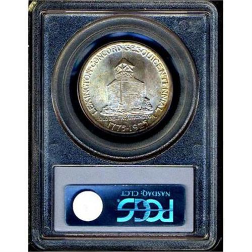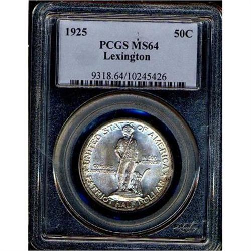 <b>1925 Lexington-Concord Half Dollar. PCGS graded MS64.</b> What is most noticeable when one first examines this coin is its sleek mint luster, bright and vibrant, it resides under a little original toning. Excellent sharpness on all devices <b>(PCGS # 9318)</b> <i>