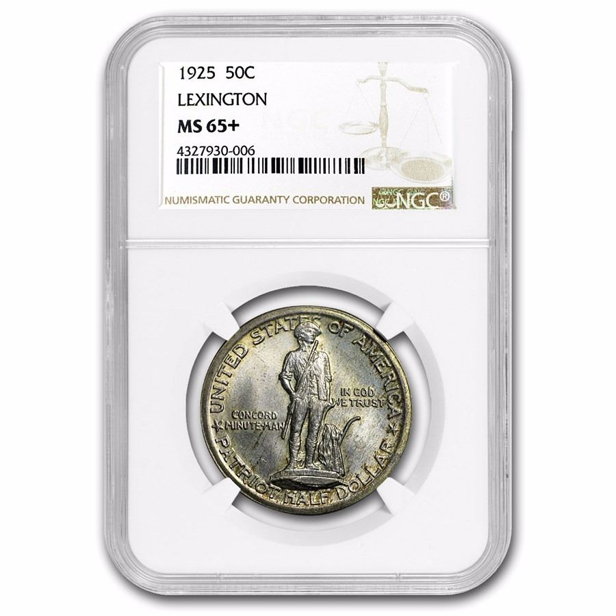 One 1925 Lexington Concord Half Dollar Coin NGC MS65+.