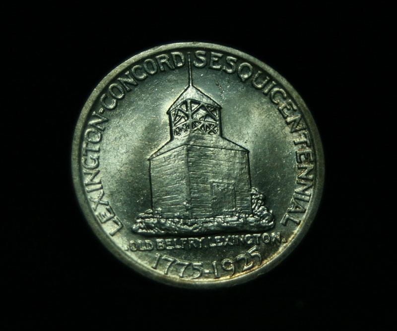 A beautiful Lustrous and golden toned example of this much beloved American commemorative. The commemorative celebrates the 150th anniversary of the "Shot Heard Round The World", which symbolically began the American Revolution and Forever changed the World. When looking at a Lexington Commemorative the points to check for wear include the Minute Man’s thighs and the near corner of the belfry, particularly toward its top. These same highpoints may also show weakness of strike. Coin World's Coin Values lists ms64 at $190 and The Wholesale Greysheet lists ms64 at $115. Estimated Value $150