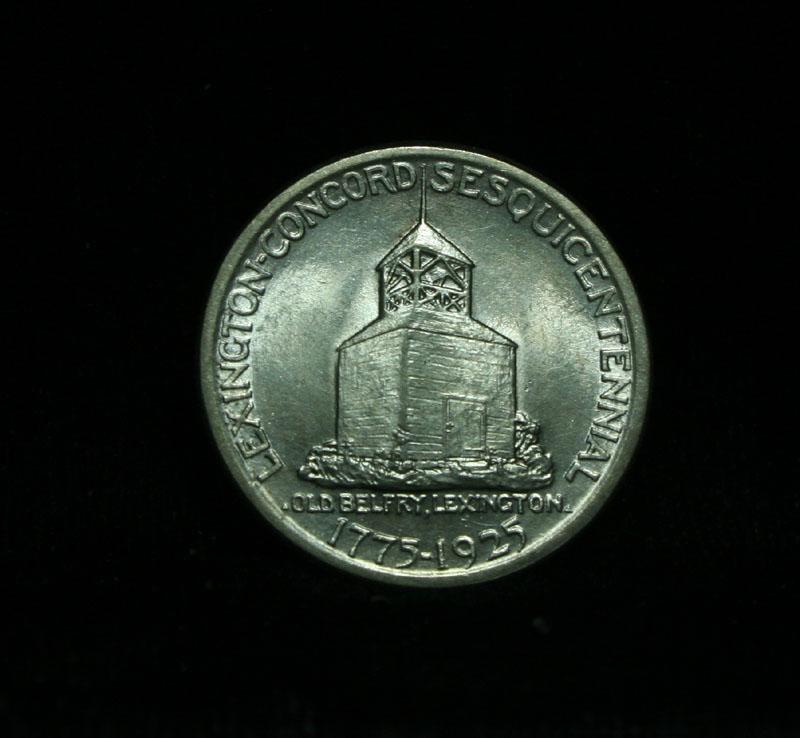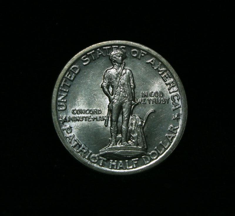 A beautiful lightly toned example of this much beloved American commemorative. The commemorative celebrates the 150th anniversary of the "Shot Heard Round The World", which symbolically began the American Revolution and Forever changed the World. When looking at a Lexington Commemorative the points to check for wear include the Minute Man’s thighs and the near corner of the belfry, particularly toward its top. These same highpoints may also show weakness of strike. Coin World's Coin Values lists ms64 at $190 and The Wholesale Greysheet lists ms64 at $115. Estimated Value $150