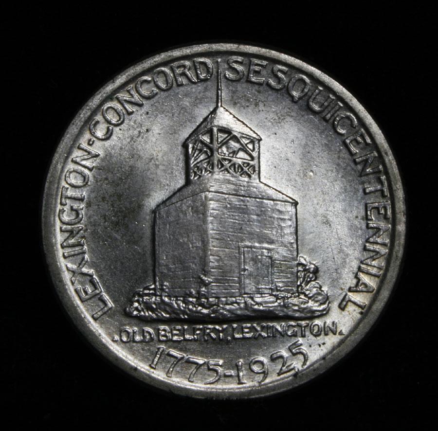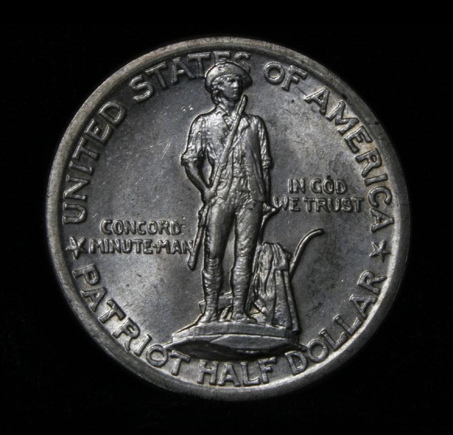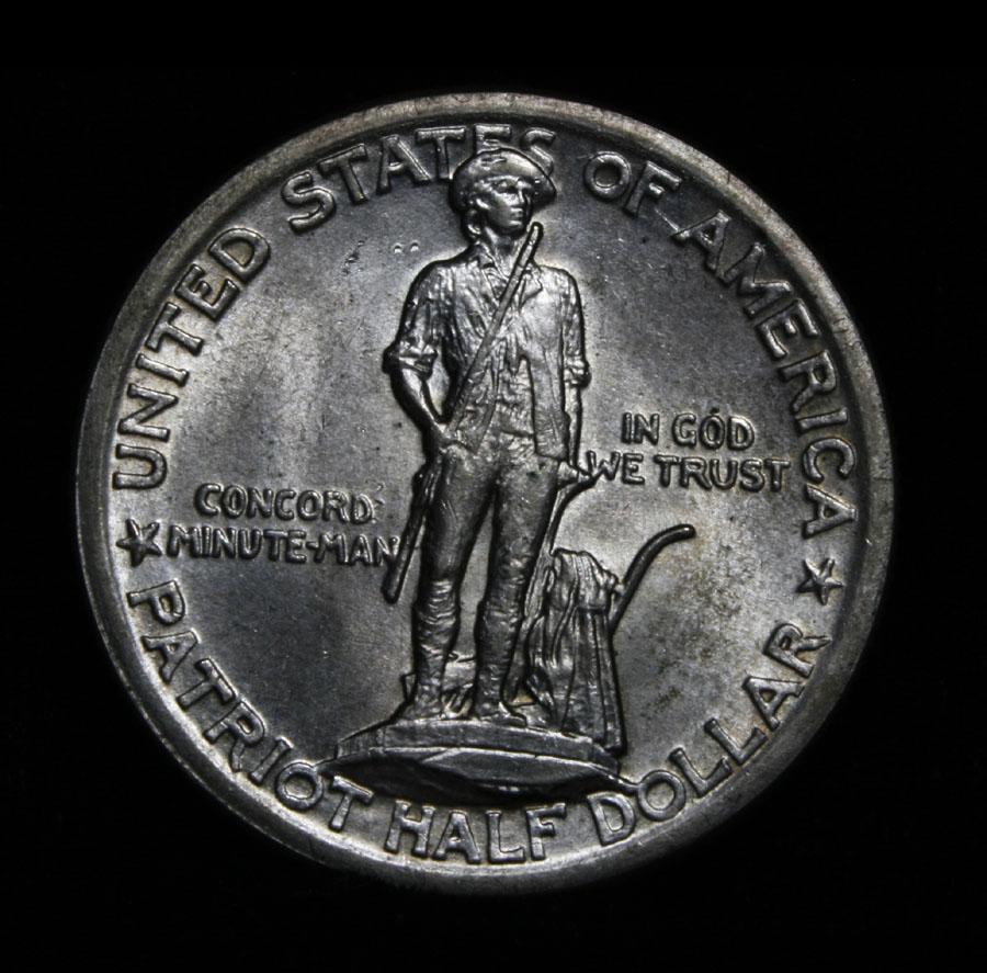 A beautiful lightly toned example of this much beloved American commemorative. The commemorative celebrates the 150th anniversary of the "Shot Heard Round The World", which symbolically began the American Revolution and Forever changed the World. When looking at a Lexington Commemorative the points to check for wear include the Minute Man’s thighs and the near corner of the belfry, particularly toward its top. These same highpoints may also show weakness of strike. Coin World's Coin Values lists ms64 at $190 and The Wholesale Greysheet lists ms64 at $115. Estimated Value $150