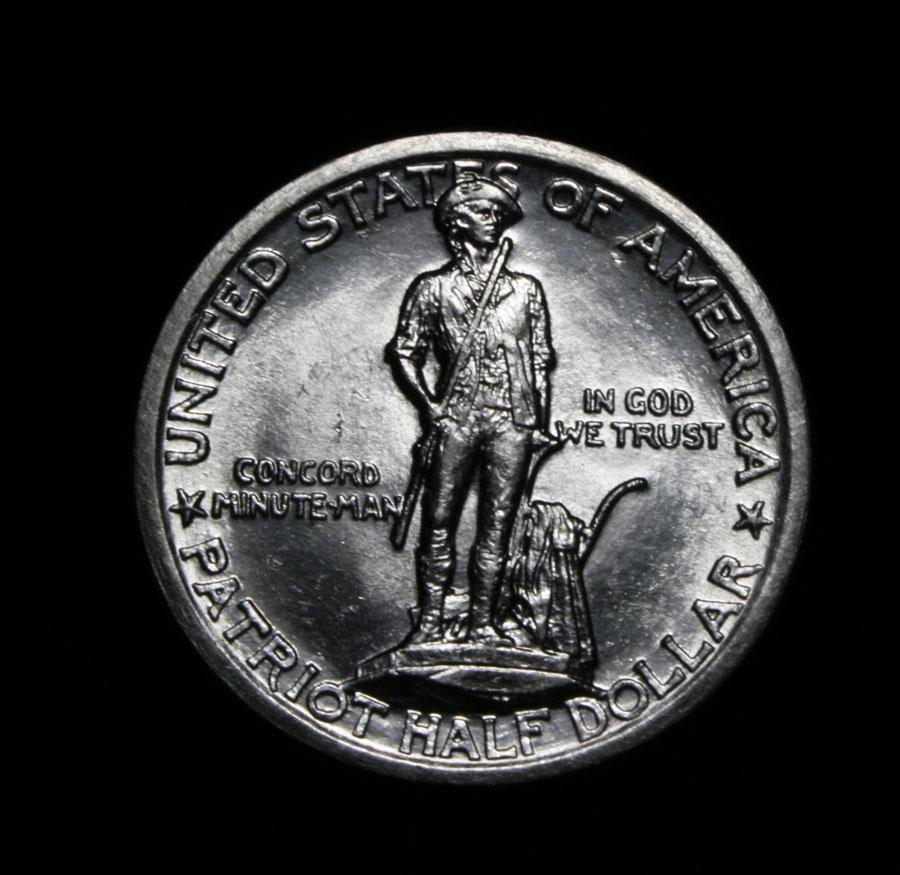 A beautiful Lustrous and Blast White example of this much beloved American commemorative. The commemorative celebrates the 150th anniversary of the "Shot Heard Round The World", which symbolically began the American Revolution and Forever changed the World. When looking at a Lexington Commemorative the points to check for wear include the Minute Man’s thighs and the near corner of the belfry, particularly toward its top. These same highpoints may also show weakness of strike. Coin World's Coin Values lists ms64 at $190 and The Wholesale Greysheet lists ms64 at $115. Estimated Value $150