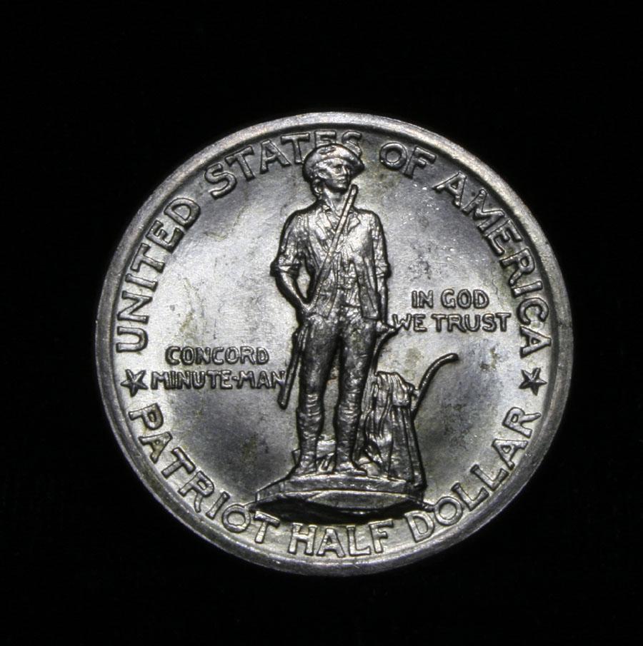 A beautiful mostly white, lightly toned example of this much beloved American commemorative. Great Luster and Great Strike. I will offer my personal buy back guarantee, that this coin is all original and will not come back Ungradeable by any major grading service. The commemorative celebrates the 150th anniversary of the "Shot Heard Round The World", which symbolically began the American Revolution and Forever changed the World. When looking at a Lexington Commemorative the points to check for wear include the Minute Man’s thighs and the near corner of the belfry, particularly toward its top. These same highpoints may also show weakness of strike. Coin World's Coin Values lists ms66 at $1550 and The Wholesale Greysheet lists ms66 at $1300. Estimated Value $1300