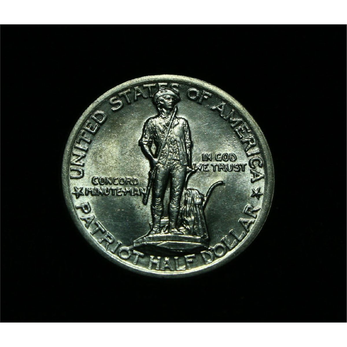 A beautiful lightly toned example of this much beloved American commemorative. The commemorative celebrates the 150th anniversary of the "Shot Heard Round The World", which symbolically began the American Revolution and Forever changed the World. When looking at a Lexington Commemorative the points to check for wear include the Minute Man’s thighs and the near corner of the belfry, particularly toward its top. These same highpoints may also show weakness of strike. The Wholesale Greysheet lists ms63 at $90. Estimated Value $100