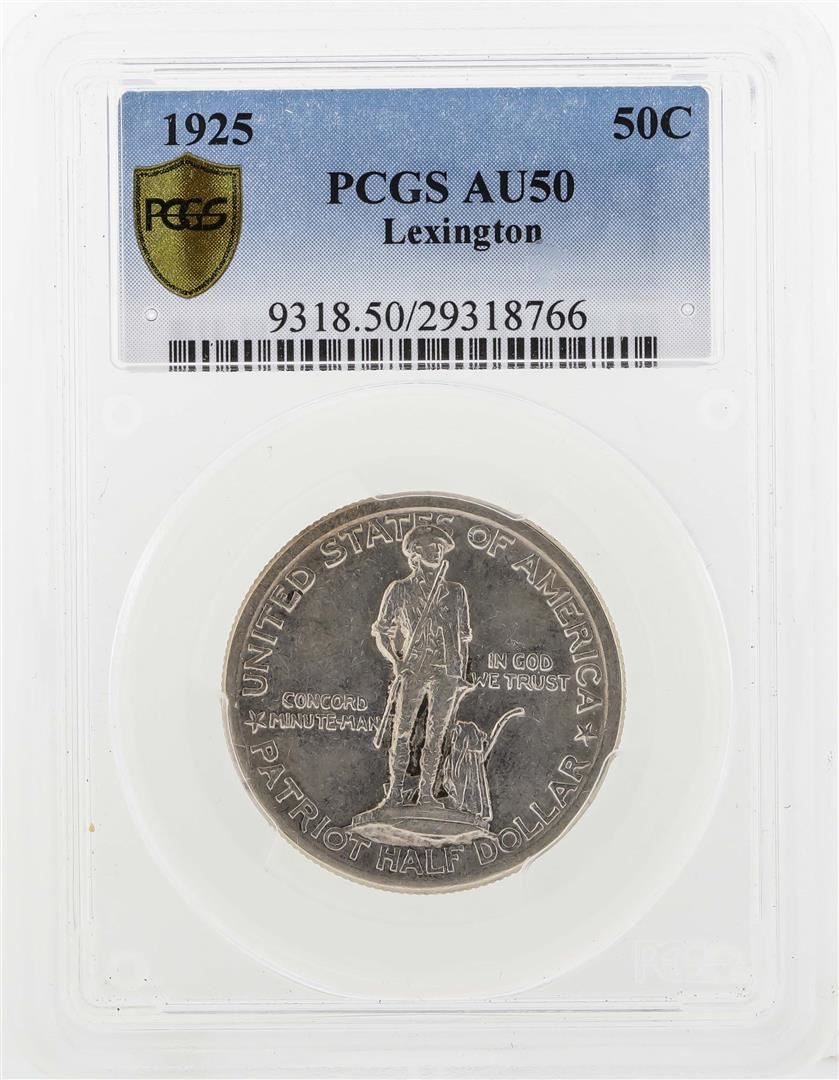 One 1925 Lexington-Concord Sesquicentennial Commemorative Half Dollar Coin PCGS AU50. PCGS Graded.
