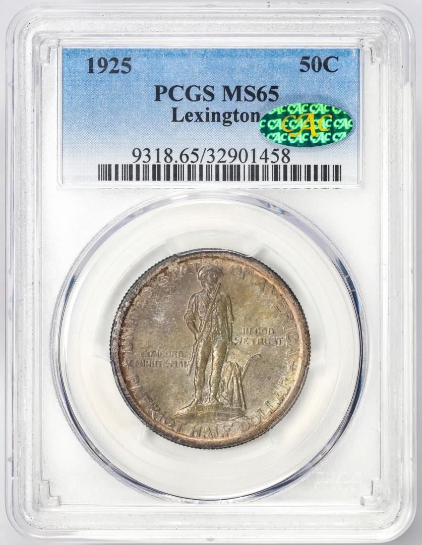 One 1925 Lexington Sesquicentennial Commemorative Half Dollar Coin PCGS MS65 CAC Color. PCGS Graded.