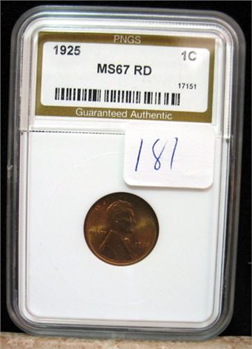 1925 Lincoln Cent PNGS MS67 Red