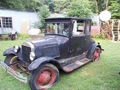 MODEL T COUPE- 2DR, 60 HP FLATHEAD V-8, COMPLETE CAR, COME GLASS GONE, INTERIOR ORIGINAL AND NEEDS WORK, STRAIGHT CAR, DOES HAVE RUST IN BODY,BLACK, COOL ROD-RESTORE