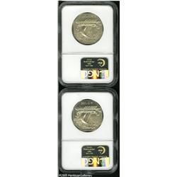 <B>1925 Medal Norse Thick Planchet MS65 NGC,</B></I> sharp and well struck with unusually bright surfaces overall; and a <B>1925 Norse Thin Planchet MS62 NGC,</B></I> a hint of silver-gray patina shows over the somewhat subdued surfaces.<BR><I>From The Mike Jacobson Collection.</B></I> 2 Coins Lot:8543
